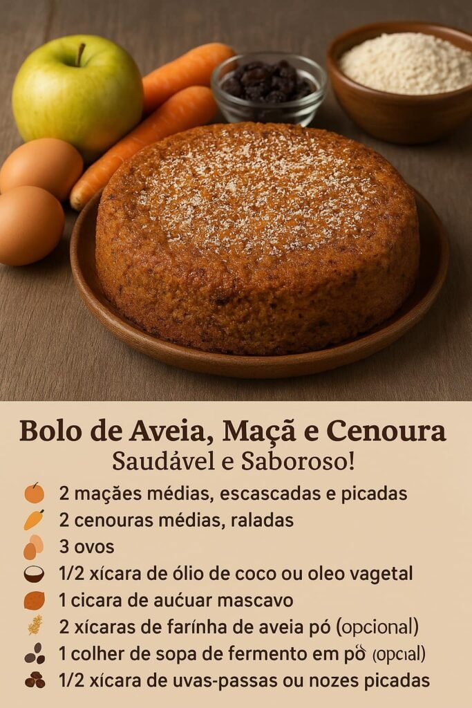 🍰 Bolo de Aveia, Maçã e Cenoura – Saudável e Saboroso! ✨